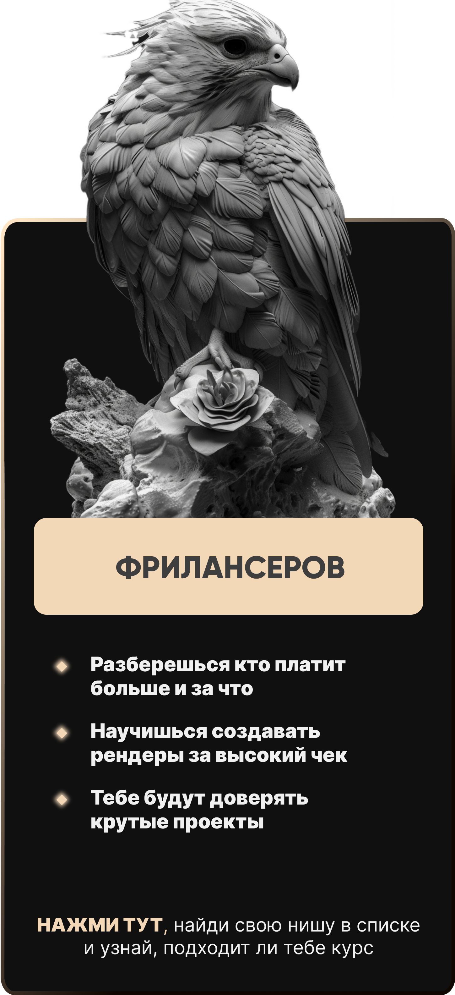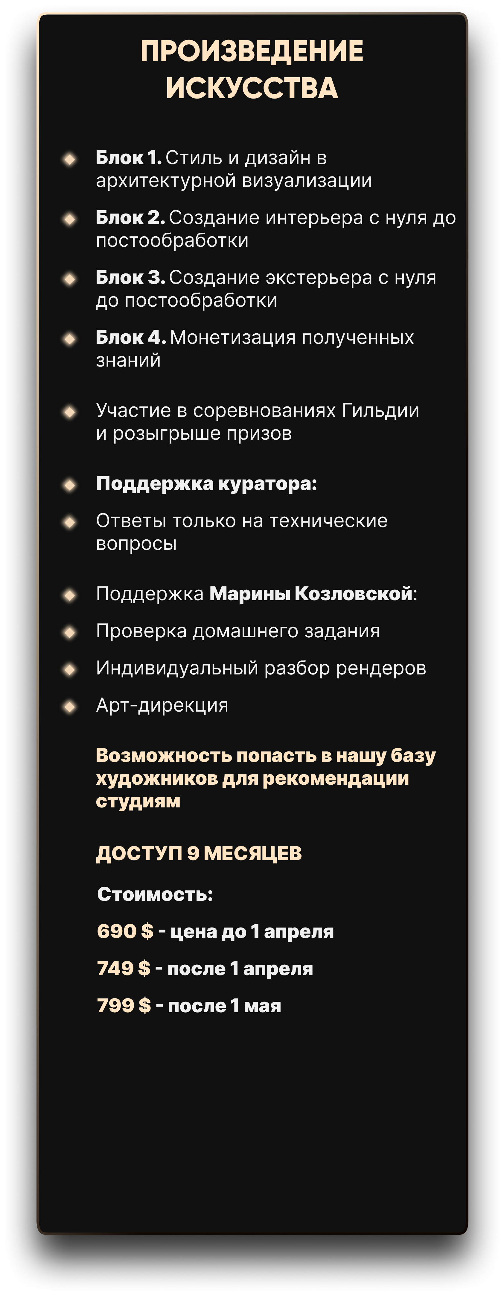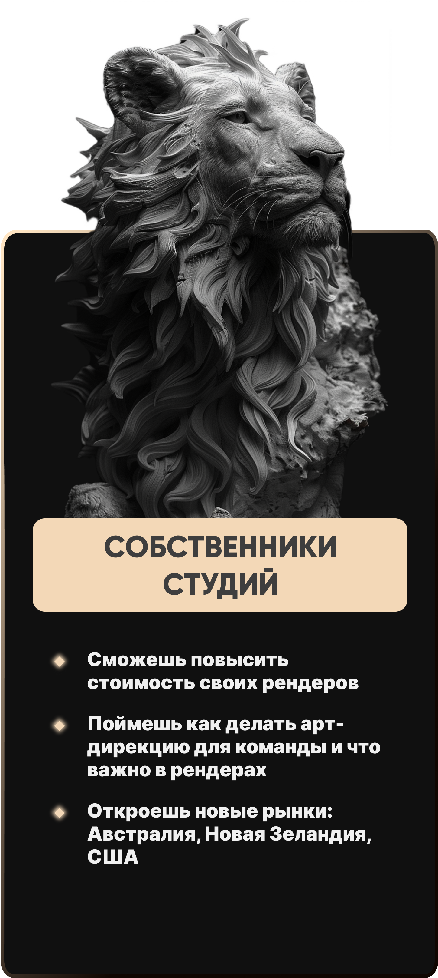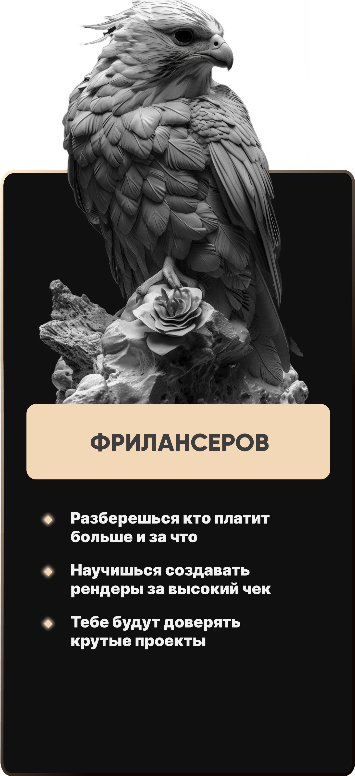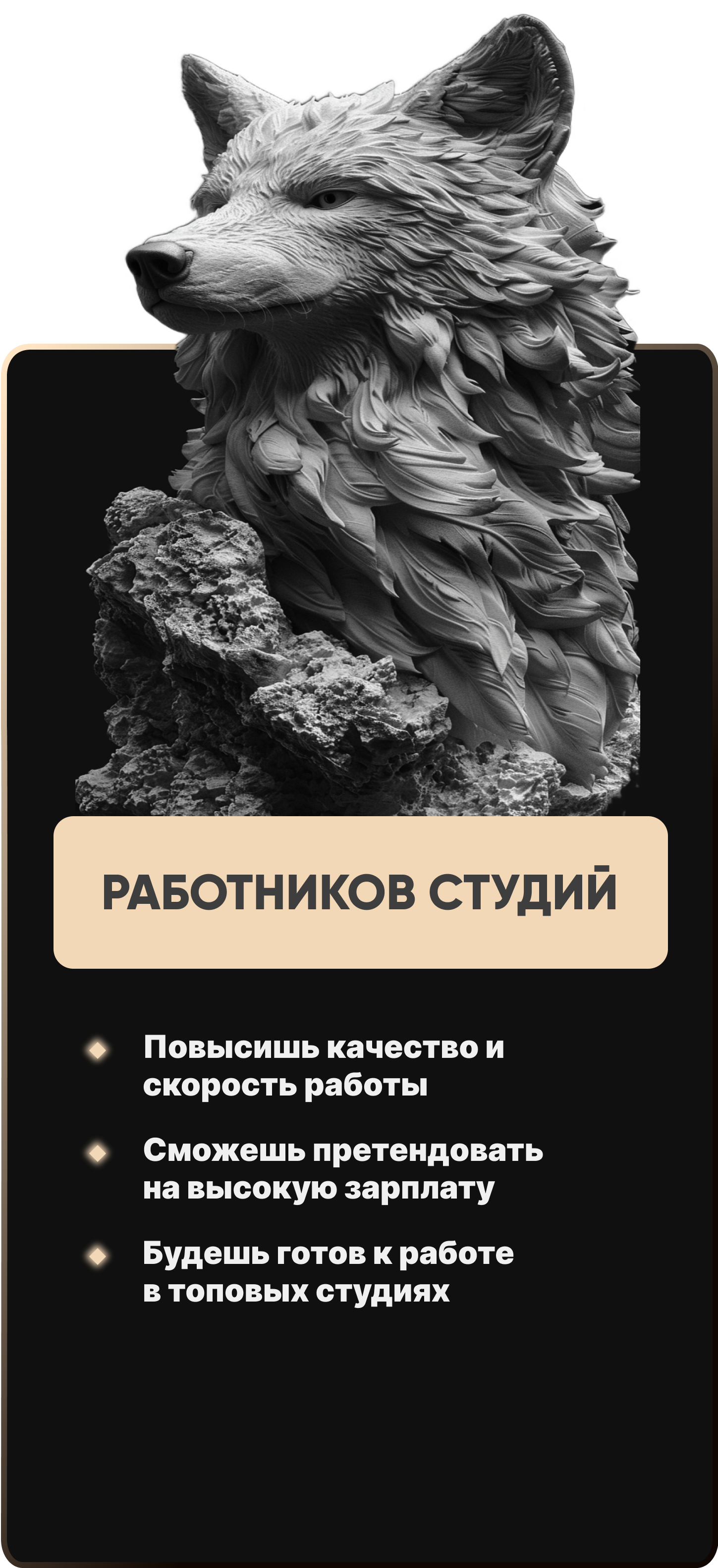 У тебя есть шанс попасть в нашу базу лучших 3D художников для рекомендаций в топовые студии.